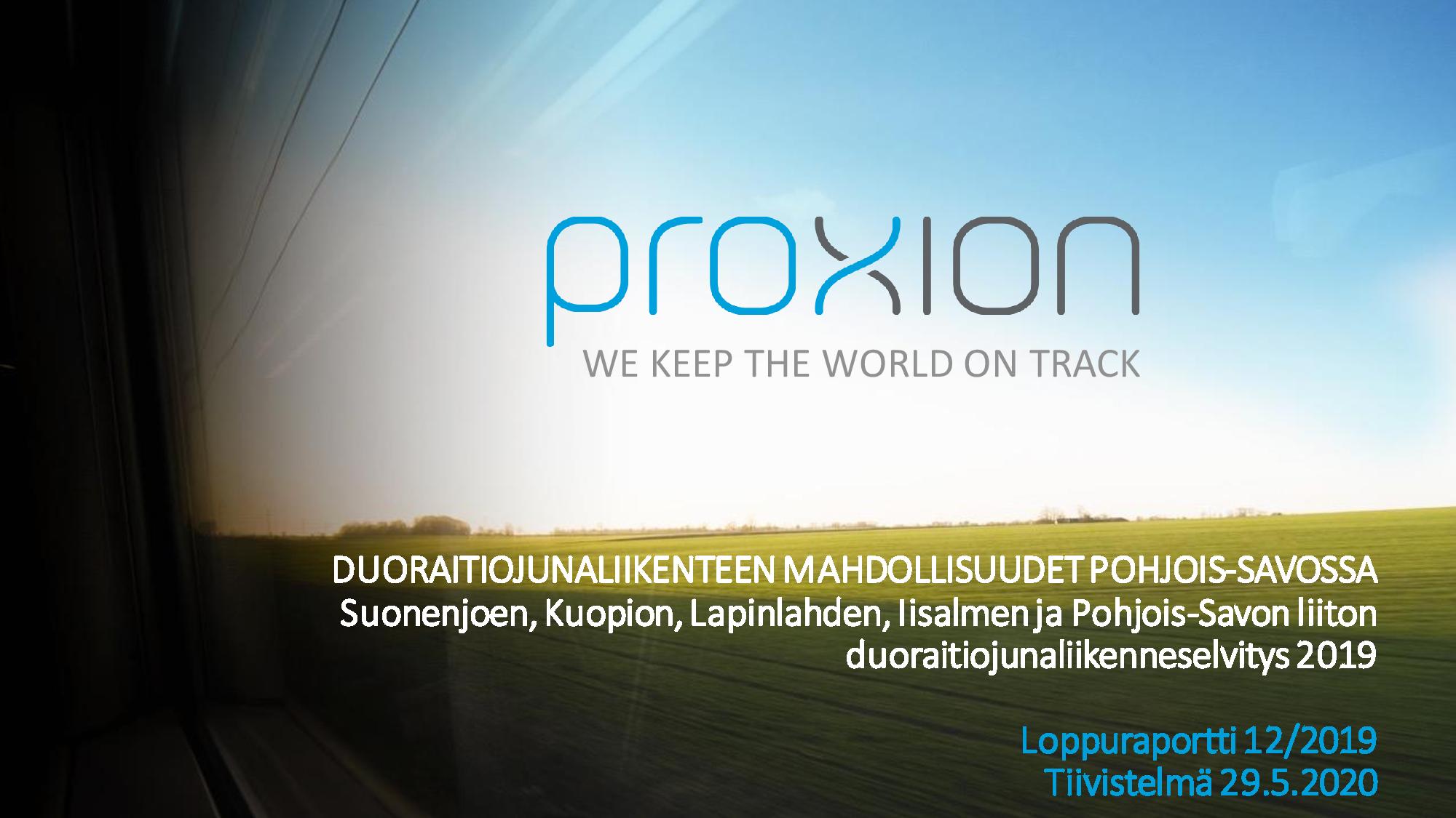 Pohjois-Savon kuntien (Suonenjoki, Kuopio, Siilinjärvi, Lapinlahti ja Iisalmi) ja Pohjois-Savon liiton tilaama duoraitiojunaliikenneselvitys on valmistunut. Selvityksessä tutkittiin mahdollisuutta käynnistää Pohjois-Savon maakunnan sisäinen henkilöliikenne raiteilla. Tarkastelualueena on Savon rata välillä Suonenjoki – Iisalmi. Liikennöinti on mahdollista aloittaa 4-6 vuoden kuluttua. Selvityksen toteutti raideliikenteen asiantuntijayritys Proxion Oy.